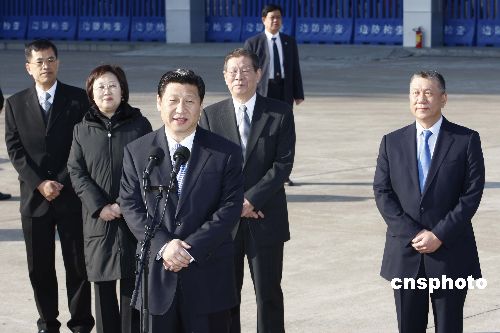 1月10日上午,國家副主席習近平抵達澳門拱北口岸,開始對澳門考察訪問。在拱北口岸,習近平發表講話,為澳門同胞齊心協力應對國際金融危機鼓勁加油。中新社發 盛佳鵬 攝