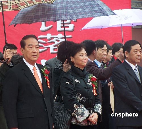 3月31日,臺灣親民黨主席宋楚瑜攜夫人,在河南漯河參加首任臺北知府陳星聚紀念館開館儀式。陳星聚(1817—1885),字耀堂,河南漯河臨潁縣人,光緒四年(1878年),任臺北知府,光緒十一年(1885年),病逝于任上,厚葬于故鄉(xiāng)臨潁縣。在任期間,陳星聚曾親率臺北軍民擊退法軍多次進攻,取得了臺北保衛(wèi)戰(zhàn)的勝利。2008年6月陳星聚墓被列為河南省級文物保護單位,并提名為陳星聚紀念館。中新社發(fā) 吳揚 攝