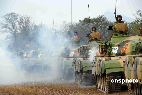 10月底,“鐵拳-2007”復雜電磁環境下機步師實兵檢驗性演習完成電磁對抗,進入實兵交戰階段。圖為裝甲部隊向演習地域集結。中新社發 周和平 攝