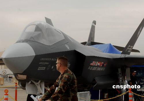 美國十一月中旬在內華達州內利斯空軍基地舉行紀念空軍成立六十年大規模飛機展示中,未來主力戰機F-35“閃電2聯合攻擊戰斗機”的公開亮相最為矚目。這種多國合作研制的新一代隱秘戰術飛機,將更新裝備美國空軍、海軍和海軍陸戰隊,以及英國皇家海軍與皇家空軍等多國部隊。中新社發 賈國榮 攝