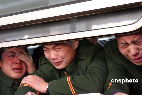 11月26日中午,駐守在中朝邊境100多名四川籍邊防退伍老兵返鄉。中新社發 陳浩浩 攝