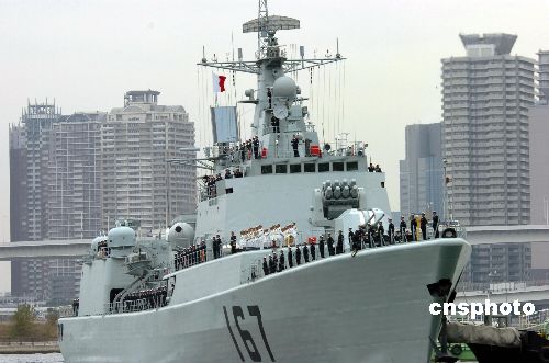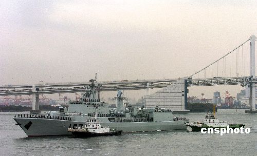 當地時間11月28日,中國“深圳”號導彈驅逐艦順利抵達日本東京晴海碼頭,開始對日本為期四天的正式友好訪問。圖為“深圳”號在日本海上自衛隊護衛艦的護衛下駛進晴海碼頭。這是中國人民解放軍海軍軍艦首次訪問日本。