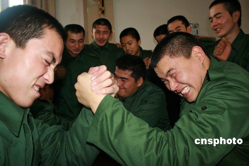 12月20日是穆斯林群眾的傳統(tǒng)節(jié)日古爾邦節(jié)。駐守在中哈邊境的武警新疆博爾塔拉蒙古自治州邊防支隊新兵連組織新入伍的少數(shù)民族戰(zhàn)士開展了豐富多彩的文藝節(jié)目,官兵們載歌載舞度過一個愉快的節(jié)日。中新社發(fā) 王考華 攝