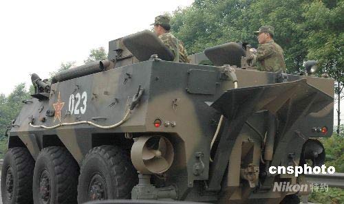 5月16日,在都江堰至汶川途中的公路上,解放軍水路兩棲裝甲車急速向地震重災區(qū)汶川進發(fā)。中新社發(fā) 肖龍聯(lián) 攝