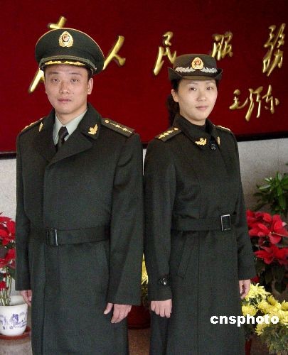 11月14日,揚州邊防檢查站官兵開始換發(fā)武警07式冬季軍服。新款冬裝分為冬常服、常服大衣和制式毛衣,均為深橄欖綠色。冬常服由關(guān)領(lǐng)改為開領(lǐng),毛上衣可佩戴肩章作外衣穿著,更顯英姿颯爽。中新社發(fā) 樊榮海蕓 攝