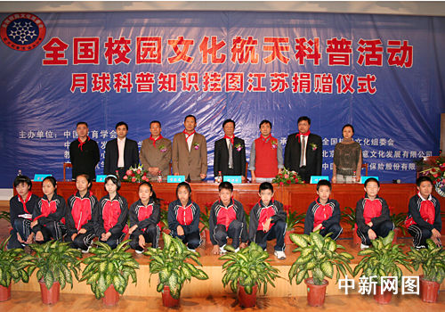10月底,“嫦娥一號”探月衛星將發射升空。為了迎接“嫦娥一號”的發射,10月15日,在江蘇省昆山市,中國人民財產保險股份有限公司向江蘇省中小學生捐贈了月球科普掛圖2000套。這套掛圖是目前國內首次以生動、活潑的卡通形象“航天娃娃”向中小學生介紹月球地貌、月球資源、月球開發、月球基地建設等月球科普知識。據了解,這次捐贈的主要目的是把太空和月球知識送到中小學生中,以激發他們對航天知識的興趣,提高他們的科學素養,培養開拓創新和刻苦鉆研的科學精神。劉明明 攝