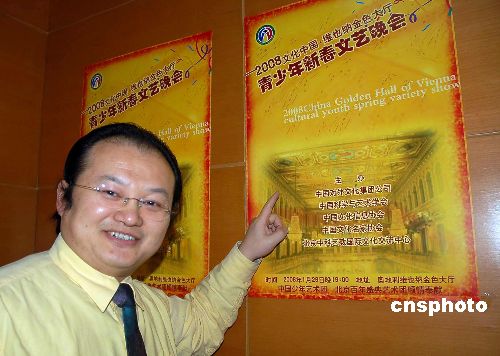 1月22日,中國對外文化集團(tuán)在北京宣布,由中國對外文化集團(tuán)等單位聯(lián)合主辦的“文化中國2008維也納金色大廳青少年新春文藝晚會”,將于29日晚在奧地利維也納金色大廳舉行。這是中國青少年首次走進(jìn)維也納金色大廳進(jìn)行文藝表演。中新社發(fā) 潘旭臨 攝