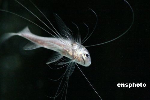 3月16日,“千手觀音”魚在上海海洋水族館展出。這種珍稀魚類名叫長指馬鲅,是該館最近引進(jìn)的。長指馬鲅主要分布在南亞地區(qū)的海域中,腹部長著很多細(xì)線狀的鰭條,俗稱“千手觀音”。中新社發(fā) 穎慧 攝