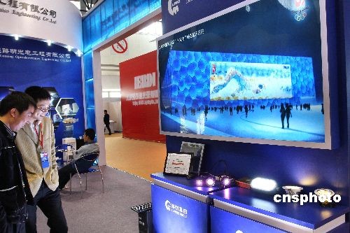 4月4日,2008年奧運場館“水立方”幔態顯示系統亮相北京第九屆國際照明電器博覽會現場受關注。由中國照明學會中國照明電器協會、北京中貿聯國際展覽有限公司共同舉辦的2008中國(北京)第九屆國際照明電器博覽會在北京舉行。 作者: 鄭雄增