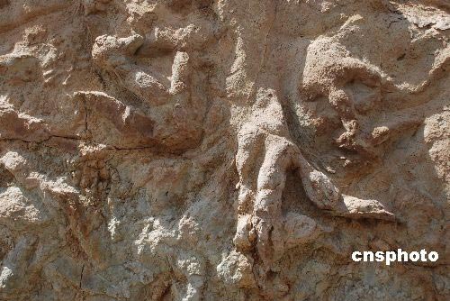 中德古生物學家4月10日宣布,日前在中國新疆吐魯番盆地鄯善地區侏羅紀地層中首次發現一批恐龍足跡化石。目前已發現恐龍足印150余個,分布范圍長達100余米,這批恐龍生活在距今約1.65億年前的侏羅紀中期,身長約5至6米,屬于群居小型肉食類恐龍。 至少包括兩種類型,均屬于肉食性的獸腳類恐龍。 此次鄯善地區恐龍足跡化石的發現,在新疆尚屬首次。它填補了新疆地區恐龍足跡研究的空白。中新社發 緱燁 閆軍 攝