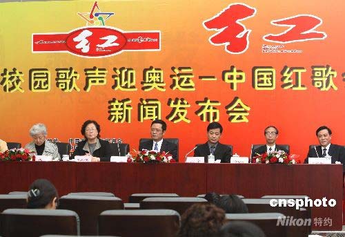 4月29日,“校園歌聲迎奧運(yùn)——中國(guó)紅歌會(huì)”新聞發(fā)布會(huì)在北京宣布,從當(dāng)日起在全國(guó)各高校選拔迎奧運(yùn)“紅歌會(huì)”歌手。該活動(dòng)由中國(guó)藝術(shù)教育促進(jìn)會(huì)、中國(guó)新聞社、江西電視臺(tái)傾情打造, 參賽者演唱的“紅歌”包括歷屆奧運(yùn)歌曲、北京奧組委推薦歌曲、經(jīng)典優(yōu)秀歌曲和學(xué)生自創(chuàng)的校園歌曲,希望藉此使更多青年學(xué)生用歌唱的形式激發(fā)凝聚力、向心力和創(chuàng)新精神,掀起中國(guó)高校迎奧運(yùn)的熱潮。中新社發(fā) 趙振清 攝