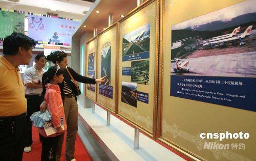 5月3日,”西藏今昔——大型主題展“正在北京民族文化宮舉辦。展覽分為西藏歷史與封建農奴制和日新月異的新西藏兩個部分,圖為觀眾正在參觀日新月異的新西藏展區。中新社發 張勤 攝
