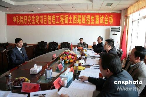 5月8日,中國科學院研究生院首次西藏研究生班招生在拉薩面試。今天是北京奧運圣火勝利登頂珠峰的一天,上午的招生面試也推遲了一個小時,專家及考生觀看了北京奧運圣火勝利登頂珠峰的電視直播。隨后來自西藏各個行業(yè)的40多名藏漢考生懷著激動和喜悅的心情參加了本次面試答辯。中新社發(fā) 扎西朗杰 攝