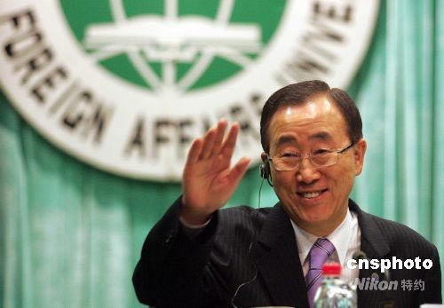 7月1日下午,聯(lián)合國(guó)秘書(shū)長(zhǎng)潘基文抵達(dá)北京,開(kāi)始對(duì)中國(guó)進(jìn)行為期3天的正式訪(fǎng)問(wèn)。圖為潘基文在外交學(xué)院發(fā)表演講。中新社發(fā) 張宇 攝