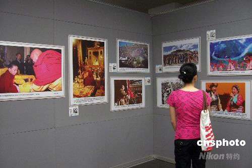 2008年10月7日,西藏今昔大型圖片展在上海圖書館免費(fèi)展出。近200幅圖片,生動展現(xiàn)了西藏的昨天和今天,再現(xiàn)了西藏和平解放、民主改革、農(nóng)奴翻身當(dāng)家作主等諸多重大歷史事件和歷史進(jìn)程,特別是改革開放以來,西藏在經(jīng)濟(jì)、文化、社會、人民生活等方面發(fā)生的翻天覆地的大變化、大進(jìn)步。 中新社發(fā) 周東潮 攝