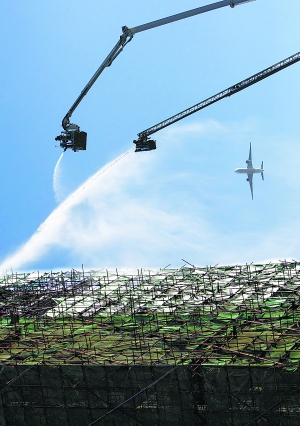 “剛著火時,煙大得很。”附近居民羅女士恰巧目擊了火災的全過程。剛起火時,她用望遠鏡能看到濃煙中躥著明火。最讓她感到驚心動魄的是每隔三四分鐘視野里就會有一架飛機經(jīng)過樓體,讓人平添幾分驚恐。