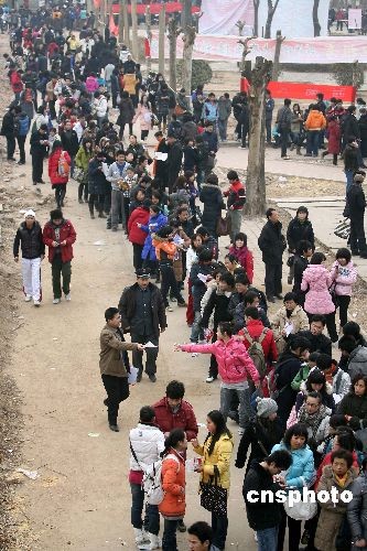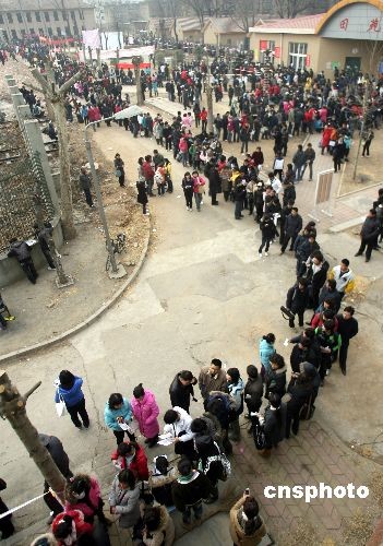 2月4日,成千上萬的考生從山東各地趕赴濟南報名參加省外院校藝術類專業考試。當日,濟南鐵道職業技術學院內的藝考報名現場,迎來首個藝考高峰日,天津體育學院、西南大學等8個院校的報名點前人頭攢動,等待報名的考生排起了百米長的隊伍。不少考生和家長清晨6點就趕來排隊。中新社發 王鋒鋒 攝