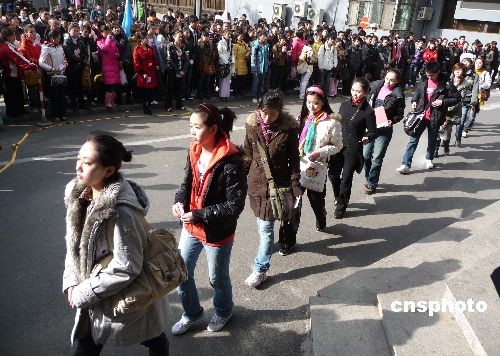 2009年2月7日,北京電影學(xué)院2009年招生初試工作已進(jìn)入了第三天,一批批來自全國各地的考生繼續(xù)為圓明星夢而拼搏努力。今年最顯著的特點(diǎn)是本色考生越來越多,濃妝艷抹、奇裝異服的考生少了。據(jù)悉,表演專業(yè)一直被認(rèn)為是北影“最難考的專業(yè)”,雖然今年的招生人數(shù)由往年的30人增加到75人,但面對4234名報考者,淘汰率仍高達(dá)98.2%。一位考官告訴記者,雖然報名者很多,但有充分準(zhǔn)備、專業(yè)水平較高的考生不超過千人,還是有很多考生很盲目。中新社發(fā) 玉龍 攝