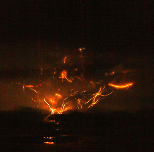 “此閃電強度比在美國中西部雷暴中所看到的閃電還要強烈。其無線電頻率噪音如此強大且持續不斷,因此生活在火山爆發區域的人根本不能看甚高頻的電視節目。”