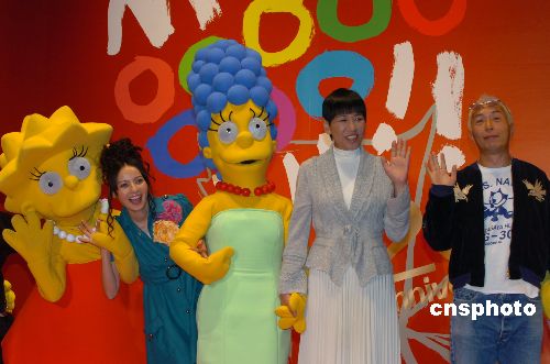 圖為美國動(dòng)畫片《辛普森一家》日語版配音演員和田明子(右二)等出席開幕式。中新社發(fā) 滕劍峰 攝