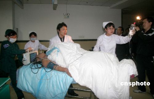 醫護人員將一名受重傷的船員送往急救室。