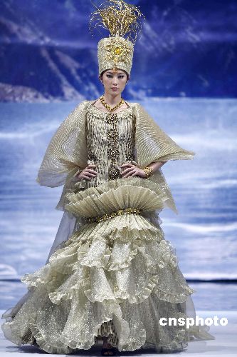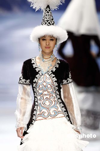 十一月四日,2007年中國(guó)國(guó)際時(shí)裝周在北京繼續(xù)進(jìn)行,在新疆服裝設(shè)計(jì)師孫秀琴時(shí)裝專場(chǎng)發(fā)布會(huì)上,設(shè)計(jì)師用質(zhì)樸的服裝語(yǔ)言為觀眾呈現(xiàn)了新疆優(yōu)美、燦爛的民族服飾文化。中新社發(fā) 盛佳鵬 攝