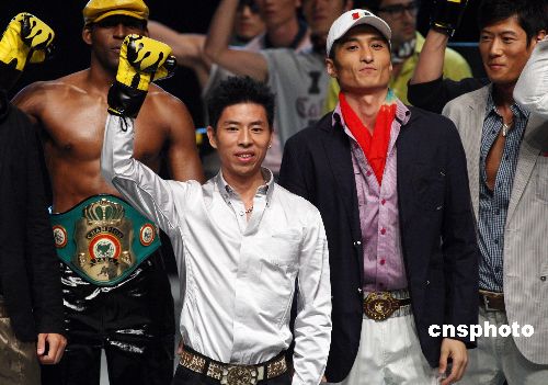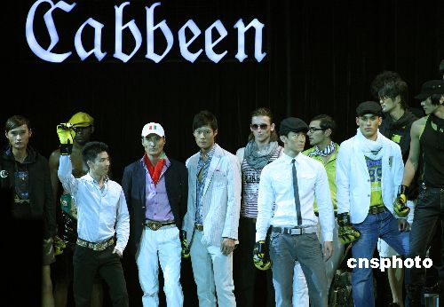 11月4日晚,正在北京舉行的中國國際時裝周08春夏系列活動,卡賓男裝發布會現場別具匠心地擺出拳擊臺,以彰顯表現激情個性的生活態度主題?ㄙe服飾中國有限公司藝術總監卡賓,一向信奉“顛覆流行,方能創造時尚”的設計哲學,他的服裝秀形式變化多端。中新社發 錢興強 攝