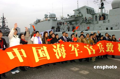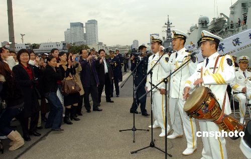 11月28日上午,中國海軍“深圳”號導彈驅逐艦抵達日本東京晴海碼頭,開始對日本進行正式友好訪問。日方舉行了熱烈的歡迎儀式。歡迎儀式后,中日兩國軍樂隊開始聯合演出。中新社發 滕劍峰 攝