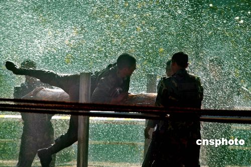 圖為中國士兵訓練旋轉木馬。