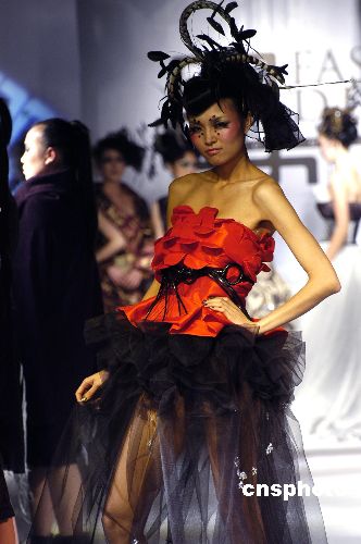 12月22日晚,上海時裝周推薦知名設(shè)計(jì)師Keeven/翟晏辛在“尚街LOFT”舉辦一場名為“胭—顏—演—晏”之暗夜“晶”靈的主題時裝秀。發(fā)布會服裝以黑色為主,凸顯了暗夜主基調(diào)。中新社發(fā) 董鴻景 攝