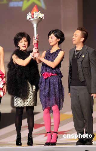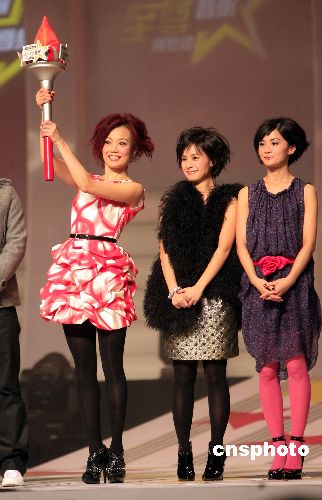 香港樂壇三日晚在會議展覽中心展覽館舉辦盛大Road Show至尊音樂頒獎活動,香港幾乎所有大小音樂明星都到場出席。中新社發 王麗南 攝