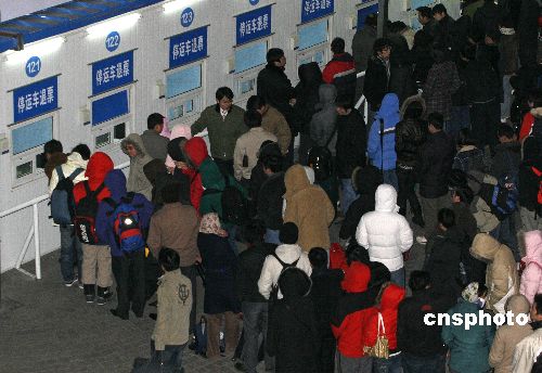 2008年1月29日,受南方惡劣天氣影響,北京西站暫時停售了京廣線株洲以南列車的車票,如旅客選擇放棄旅行,可以全額退票。北京西站已在北廣場121至130窗口,新開辟了10個退票窗口。中新社發 魯谷 攝