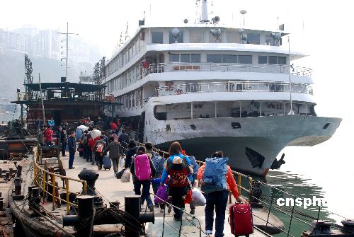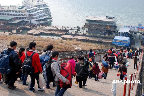2月14日,在三峽庫區腹地的重慶云陽港,旅客正乘船出行。當天,三峽庫區出現節后水路運輸高峰。三峽庫區強大的通航能力、相對低廉的運輸價格,使水路成為庫區群眾出行的主要選擇。中新社發 劉小洋 攝