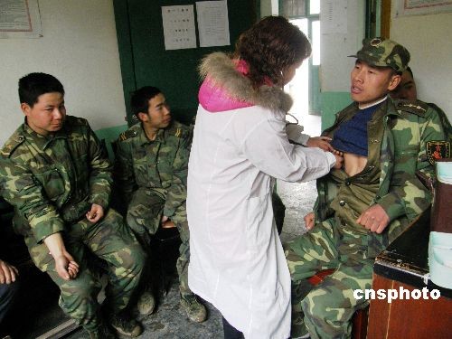由于貴州受50年不遇的連續凝凍天氣的影響,輸電線路受到嚴重毀損,大部分地區停電停水,人民群眾的基本生活受到極大影響,工農業生產全面停止。災情發生后,成都軍區駐重慶某部,根據上級命令冒著嚴寒火速趕到受災比較嚴重的貴州黔南搶修農村電網,保證當地居民早日用上照明電。福泉市衛生局獲悉后,積極組織醫務人員到抗災一線為抗凍救災部隊送醫送藥。中新社發 毛遠富 攝