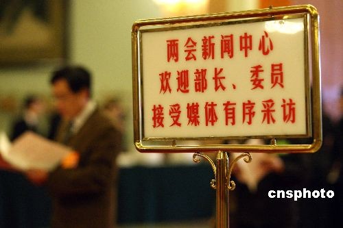 兩會新聞中心為方便媒體采訪“部長”設(shè)引導(dǎo)牌