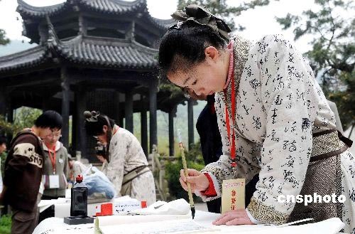 圖:中日韓書(shū)法家紹興蘭亭潑墨(4)
