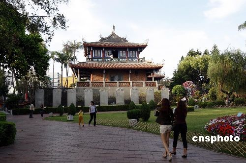 赤嵌樓位于臺南市中區(qū)赤嵌樓與民族路交叉口,原為荷蘭人所建。早期的漢人稱荷蘭人為紅毛,所以也把赤嵌樓叫做紅毛樓,或稱番仔樓;目前赤嵌樓列為國家一級古跡,也是臺南代表性的名勝,赤嵌樓的文物與建筑歷經(jīng)荷蘭、明鄭及滿清時代,初建于公元1650年,其建材據(jù)說皆由荷蘭人自海外運來,稱為普羅民遮城,系荷蘭人在漢人起義抗荷的郭懷一事件后所興建的。在鄭成功攻占臺灣以后,曾經(jīng)改普羅民遮城為“東都承天府”,并以赤嵌樓做為全島最高的行政機構(gòu),隔臺江與今安平古堡相對,十分具有歷史與文化的價值。中新社發(fā) 杜洋 攝