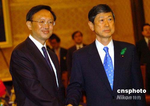4月17日,中國外長楊潔篪抵達東京,與日本外相高村正彥商談胡錦濤主席下月訪日的具體事宜。高村正彥表示,日方期盼胡錦濤主席訪日取得圓滿成功。中新社發 朱沿華 攝