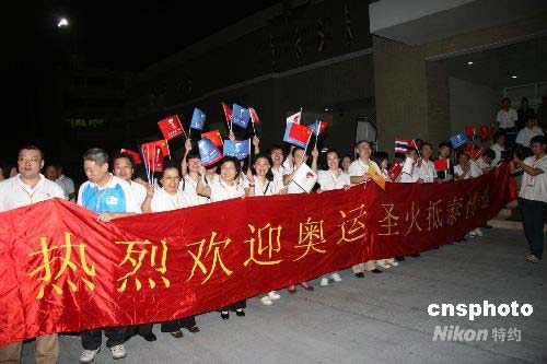 北京奧運圣火搭乘專機于當地時間4月18日凌晨2點25分(北京時間3點25分)抵達泰國首都曼谷。圖為中國駐泰國使館人員前往曼谷空軍機場喜迎奧運圣火到來。作者: 顧時宏