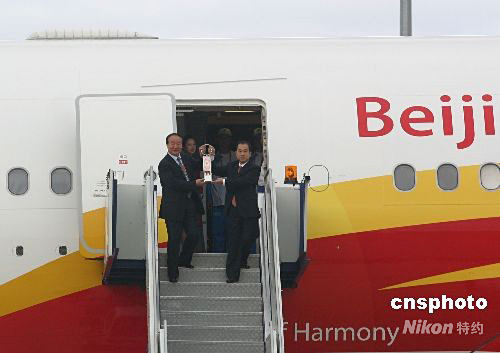 4月23日上午7時52分,搭載北京奧運圣火的“奧運圣火號”飛機平穩(wěn)地降落在澳大利亞首都堪培拉的費爾伯恩機場?芭嗬潜本⿰W運圣火海外傳遞的第十五站,也是奧運圣火在大洋洲傳遞的唯一一站。