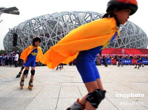 北京隆重慶祝奧運會倒計時100天 。中新社發 宋吉河 攝