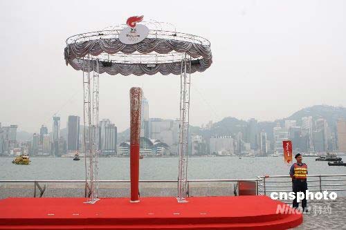 圖為剛剛揭幕的火炬雕塑后,水警、消防等進(jìn)行安全保衛(wèi)工作。中新社發(fā) 武仲林 攝