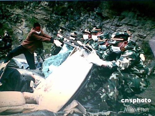 組圖:武警官兵抗震救災途中就展開救援搶險(2)
