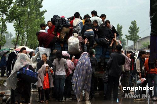 5月14日,四川省地震重災區什邡市紅白鎮的災民被轉移往安全地區。中新社發 張雷 黃龍 攝