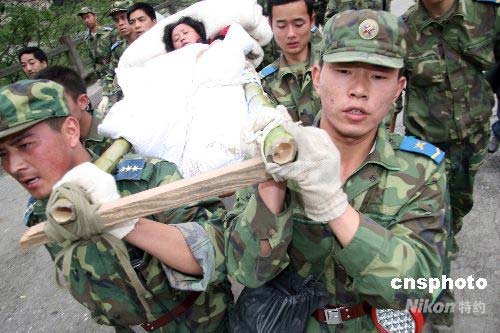 地震發(fā)生后,中國人民解放軍官兵迅速趕往四川各個災(zāi)區(qū)全力進(jìn)行救助,被災(zāi)區(qū)人民親切的稱為“親人解放軍”。中新社發(fā) 黃家明 攝