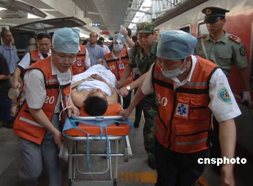 組圖:地震災(zāi)區(qū)首趟運送傷員專列順利抵達重慶(5)