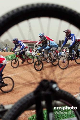 2008國際自行車聯盟BMX(小輪車)世界錦標賽將于5月28日晚在山西省太原市拉開戰幕。33個國家的870多名運動員參加此次比賽。5月27日上午,先期到達的國外運動員抓緊時機,熟悉場地。中新社發 張云 攝