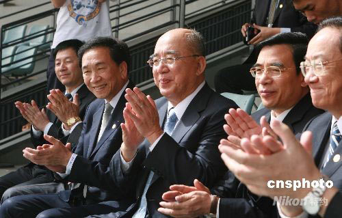 圖為中國(guó)國(guó)民黨主席吳伯雄一行前往五棵松棒球場(chǎng)進(jìn)行參觀。中新社發(fā) 廖文靜 攝