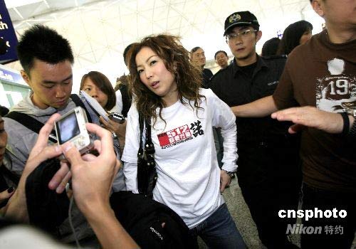 鄭秀文出現(xiàn)在啟程赴四川地震災(zāi)區(qū)現(xiàn)場(chǎng)。中新社發(fā) 王麗南 攝
