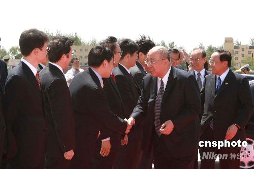 5月29日,中國國民黨主席吳伯雄一行離開北京啟程前往上海。中共中央國務院臺灣事務辦公室主任陳云林前往機場送行。中新社發 廖文靜 攝